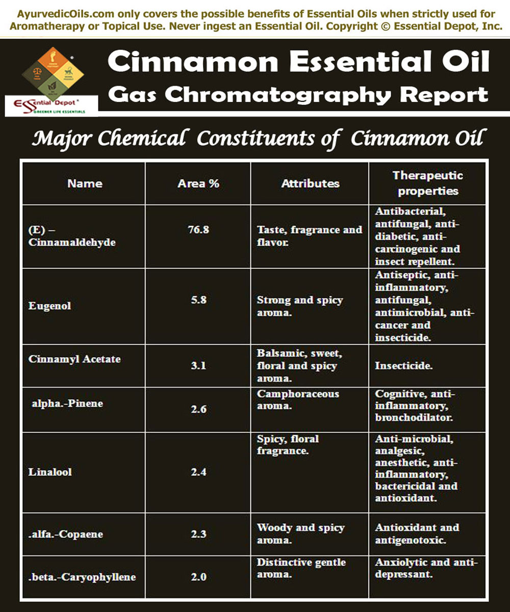 The most prominent among them are anti-depressant, sedative, antiseptic, nervine, bactericide, analgesic, sudorific, antiphlogistic, cicatrisant, emmenagogue, decongestant, deodorant, anti-inflammatory, carminative, anti-spasmodic, rubefacient, cholagogue, vulnerary, hypotensive, antiviral, cytophylactic, anticonvulsant, hormonal balancing and diuretic properties.
